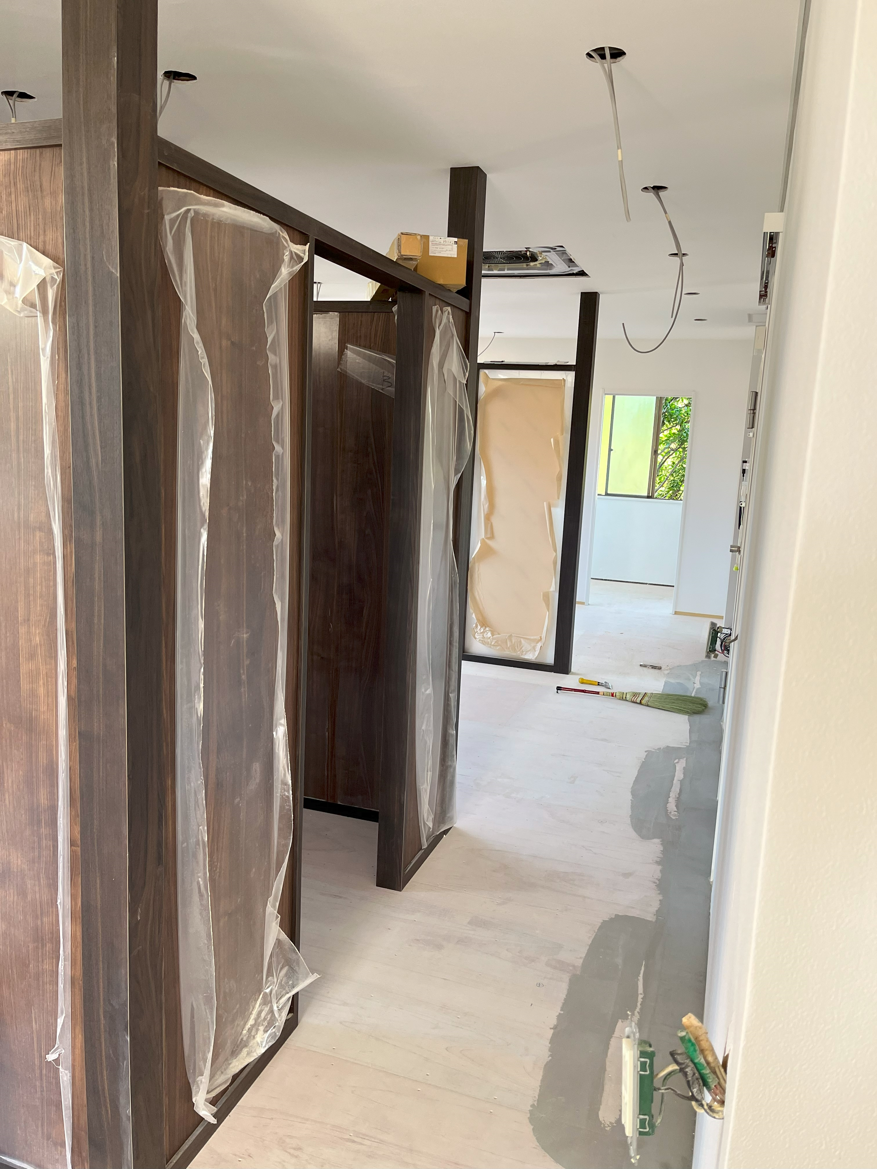 床からパーテーションを立ち上げていきます。だんだん歯医者さんっぽくなってきましたね!