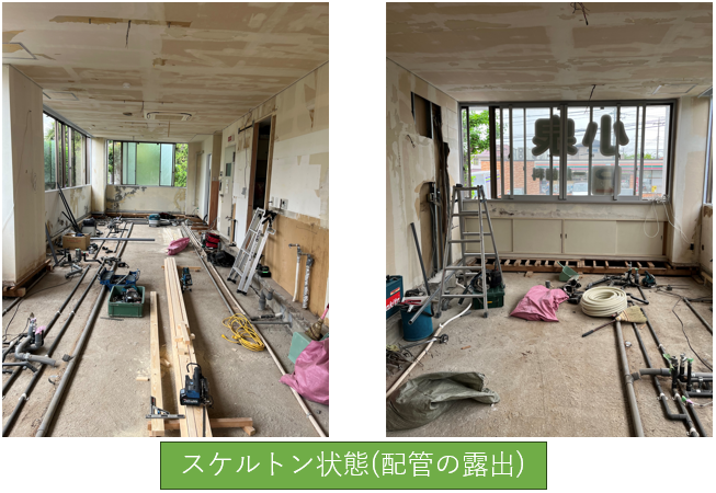 大変でしたが業者やスタッフ総出で院内の物を全部出して空っぽにしました。床も全部剥がして配管も露出しています。床下はこのようになっているのですね。