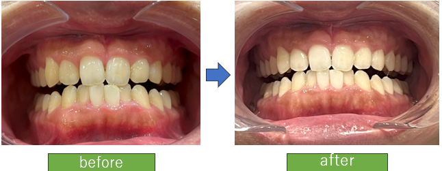 どちらもそこまで色合いが悪いわけではないがやや茶色や黄色っぽい。ホワイトニング歯磨き粉ではこれ以上白くならない限界の色合いです。